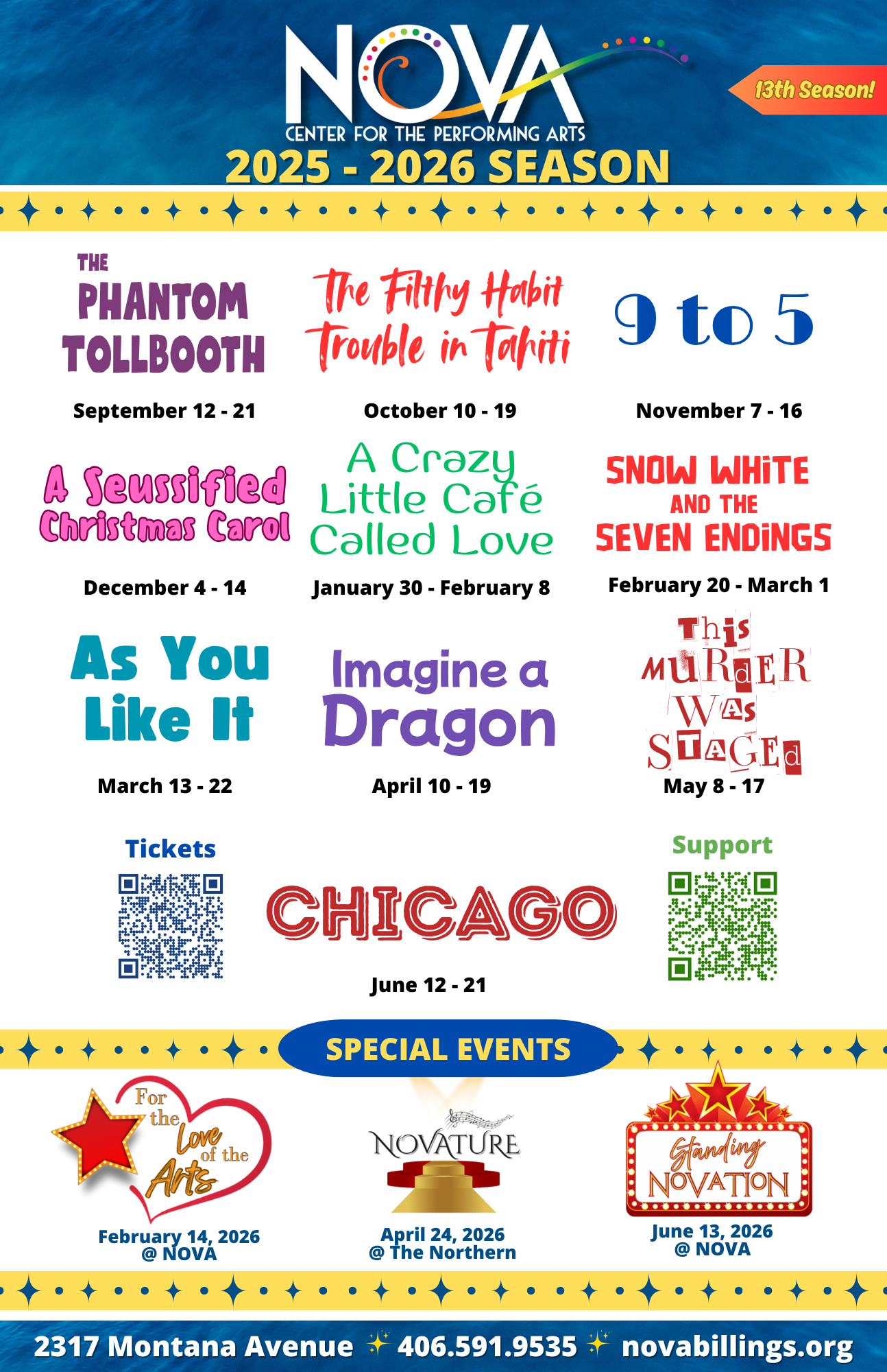 Our weekend shows for 9 to 5 are SOLD OUT!! Thank you to everyone that purchased tickets. Missed this show? We have another AMAZING show coming up in a few weeks. Get your tickets now for A Seussified Christmas Carol #novacenterfortheperformingarts #downtownbillings #billings #novabillings #billingsmt #billingsmontana #billingstheater
